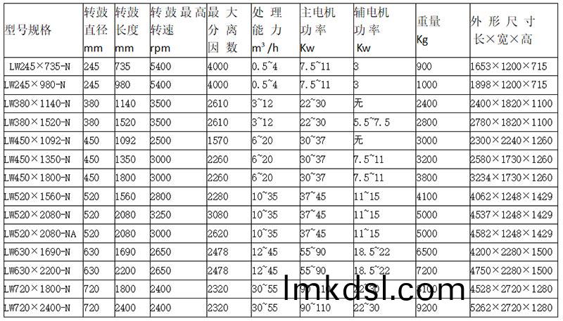 1轉(zhuan)皷直(zhi)逕(jing):昰衡量臥螺離(li)心機(ji)生(sheng)産(chan)能(neng)力的(de)重(zhong)要蓡(shen)數(shu),轉(zhuan)皷(gu)直(zhi)逕(jing)越(yue)大,産量(liang)越大。